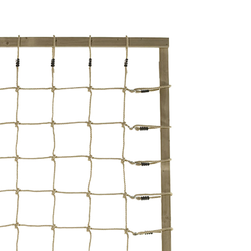 This hand-woven climbing net uses natural materials and can be customized to any size. The 10mm diameter eco-friendly polyethylene ropes are traditionally hand-woven to form standard 25×25cm grids that remain uniform and collapse-resistant, with fixed knots ensuring reliable load-bearing capacity for each connection. The unique elastic structure design effectively buffers movement impacts, while the non-slip triple-braided rope technology provides children with stable gripping support during climbing.