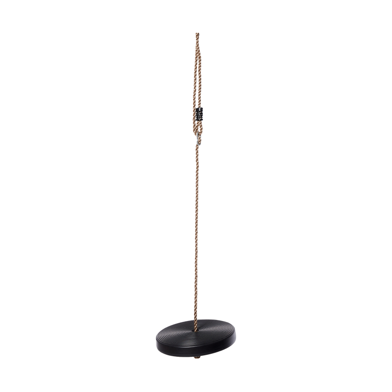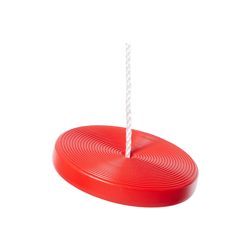 This disc swing with rope features a 28cm diameter, 7cm thick disc, 1.4 m- 1.8 m adjustable height rope, and a metal ring. Made of eco-friendly Polyethylene plastic, this monkey swing requires simultaneous use of hands and feet to maintain stability, offering a more challenging swinging experience. With waterproof and corrosion-resistant properties, it's specially designed for outdoor use.