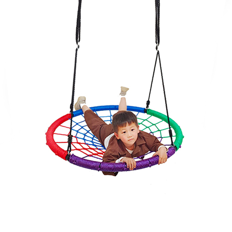 This 100cm integrated nest tree swing is highly popular among children for its quick and easy assembly. The outer ring is wrapped with durable PE rope for ultimate comfort. As everyone knows, our oversized woven round net swing withstands weather impacts while maintaining its appearance, thanks to the stable PE plastic material and weather-resistant multi-strand braided plastic ropes that can handle nature's wind and rain challenges.