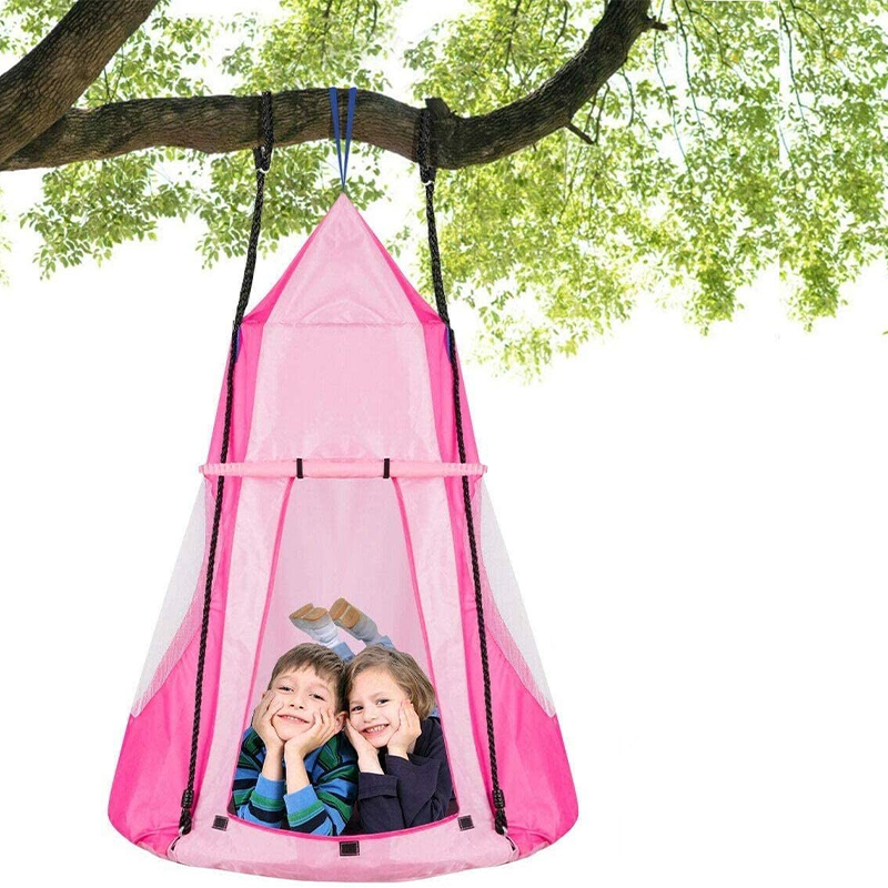The complete hanging tree swing set includes: 1 children's saucer swing, 1 detachable swing tent, 2 PE ropes, and 4 foam-wrapped galvanized steel tubes. This tent swing serves as an ideal choice for gardens, backyards, playgrounds, bedrooms, and porches - equally suitable for both active play and quiet relaxation. The quick-convert design allows effortless transformation between sheltered and open-air modes within minutes, adapting to changing weather conditions or activity needs while maintaining structural stability through its reinforced steel frame and durable 600D Oxford fabric construction.