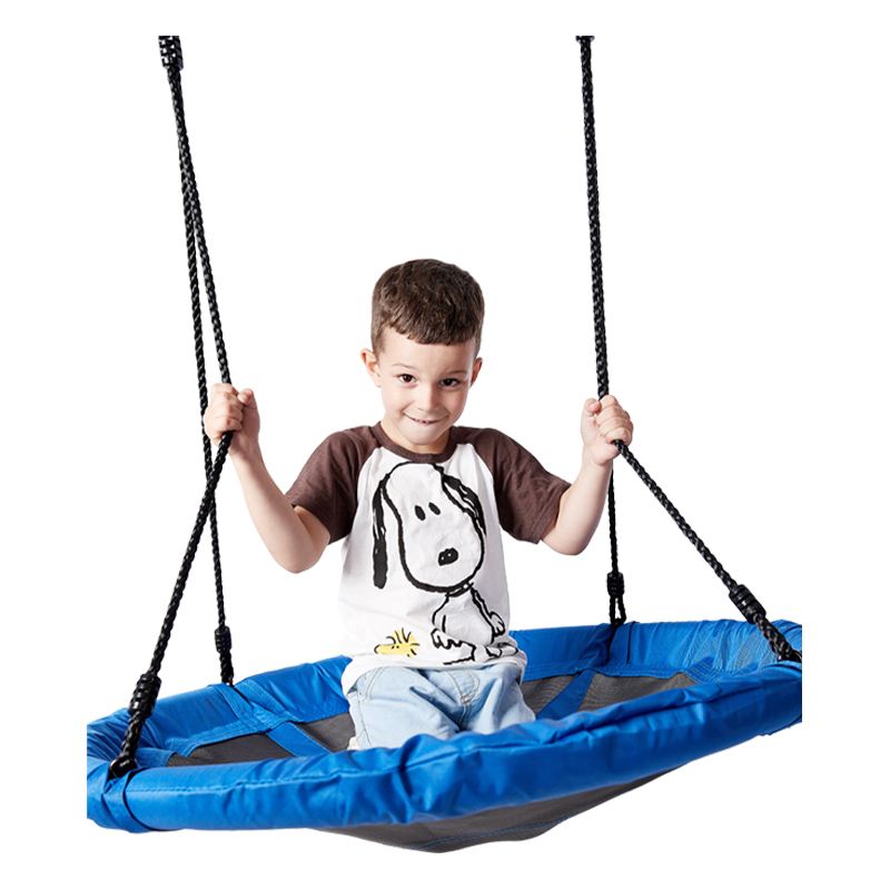 This outdoor saucer swing is crafted with premium 2x1 density Teslin fabric that offers UV protection, tear resistance, colorfastness, and waterproof performance while providing tactile comfort. The nest swing features triple-reinforced PE ropes and 0.8-1.2mm thickened galvanized steel pipes, safely accommodating 2-3 children simultaneously. With customizable diameters ranging from 80-150cm, it offers two assembly options: 4-section pipes for easy installation or 8-section pipes for enhanced portability, perfectly adapting to both tree trunks and swing frame setups to instantly transform backyards and parks into family fun zones.
