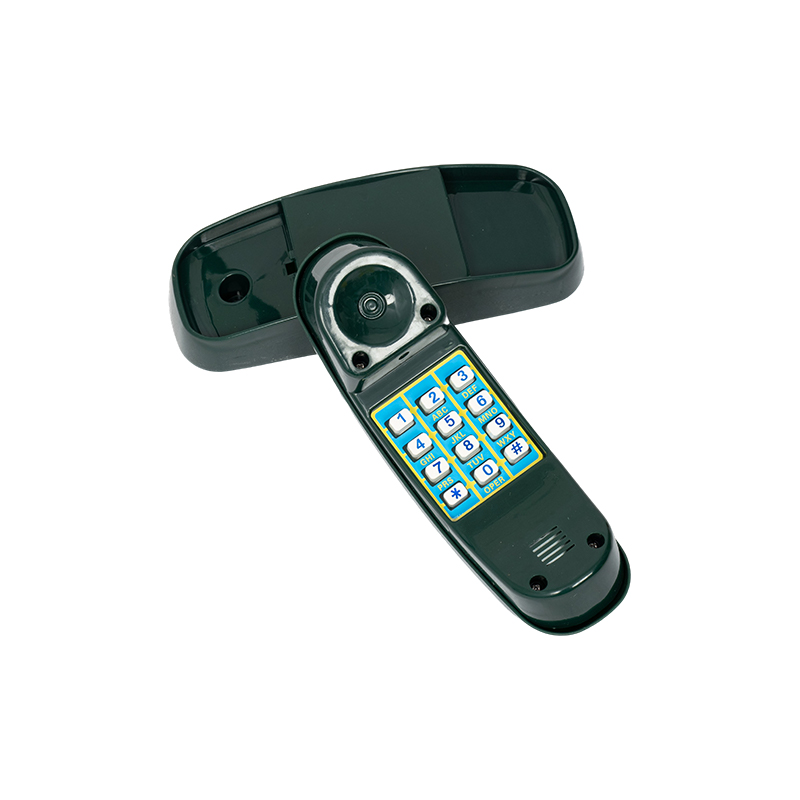 The playground telephone's body Material is made of impact-resistant PP plastic, dimensions 20.5×6.7×8.5cm (8.07"×2.64"×3.35"), tailored for children’s ergonomics. Rounded anti-collision edges paired with UV-resistant coating withstand outdoor sun, rain, and freezing temperatures without deformation or cracking; securely installed on wooden frames for long-term use.
