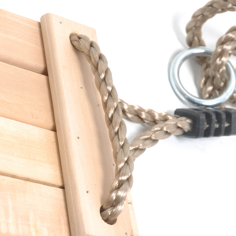 The Beech Hardwood 4-Plank Swing Seat, crafted from a blend of premium hardwood and birch, this swing seat features a four-plank design for enhanced stability. Treated with anti-crack and anti-corrosion coatings, paired with 10mm PE ropes, it ensures reliable load-bearing capacity. Seat dimensions: 40×16×1.2cm (15.7"×6.3"×0.47"), with smooth, rounded edges for safety and comfort.